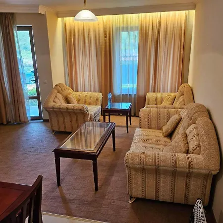 Луксозният апартамент в Централния курорт на Банско предлага пато и балкон с гледка към планината и удобства като климатик. В банята са осигурени вана и душ с вграден душ кабина.